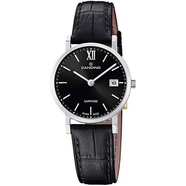 ساعت مچی زنانه کاندینو (CANDINO) مدل C4725/3 این ساعت مچی زنانه، ترکیبی بینقص از ظرافت کلاسیک و کیفیت سوئیسی است. مدل C4725/3 از برند معتبر کاندینو، با موتور کوارتز سوئیسی دقیق، همراهی مطمئن برای لحظات روزمره و رسمی شما خواهد بود. قاب استیل ضدزنگ با قطر ایدهآل 29.3 میلیمتر، در کنار شیشه ضدخش سافایر (یاقوت کبود)، دوام و شفافیت بینظیری را تضمین میکند. این مدل شیک با بند چرمی مشکی و نمایشگر تاریخ، انتخابی استثنایی برای بانوانی است که به دنبال سادگی لوکس و استاندارد “Swiss Made” میگردند.
