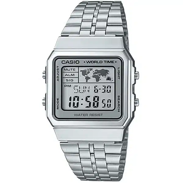 - وجود قابلیتهایی مثل ساعت جهانی (World Time)، کرونومتر، تایمر معکوس و ۵ آلارم روزانه، این ساعت را به ابزاری قدرتمند برای استفادههای روزمره، سفر و ورزش تبدیل کرده است.