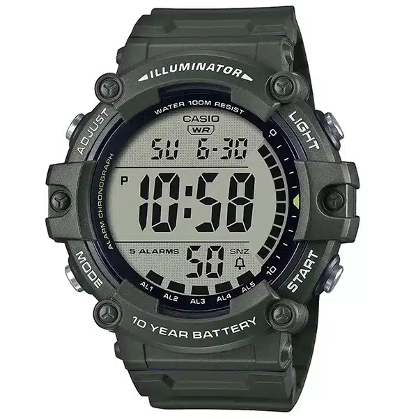 ساعت مچی کاسیو مدل AE‑1500WHX‑3AVDF یک انتخاب ایدهآل برای کسانی است که به دنبال ترکیب طراحی اسپرت، دوام بالا و کارایی بینظیر هستند. این مدل با بدنه و بند رزینی سبزرنگ، صفحه دیجیتال بسیار بزرگ و خوانا، مقاومت آب تا عمق ۱۰۰ متر و عمر باتری شگفتانگیز ۱۰ ساله، همراهی مطمئن در هر شرایطی خواهد بود. امکاناتی چون زمانسنج دقیق ۱/۱۰۰ ثانیهای، تایمر شمارش معکوس، ۵ آلارم روزانه، زمان دوگانه و تقویم خودکار، آن را به گزینهای کارآمد برای فعالیتهای روزمره، سفر و ماجراجویی تبدیل کرده است. سبک، راحت و مقاوم، این ساعت انتخابی اقتصادی و بادوام برای استفاده طولانیمدت است.