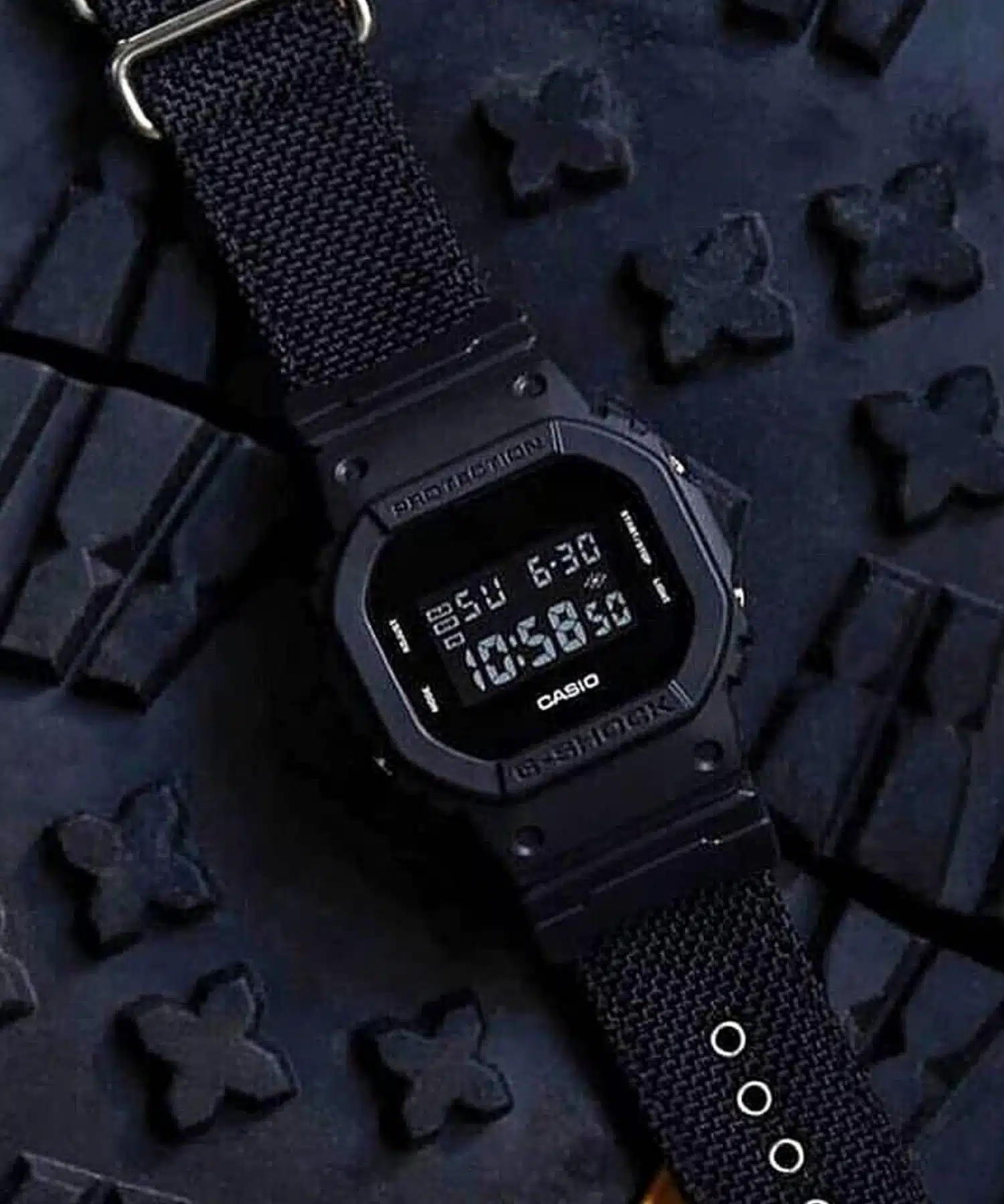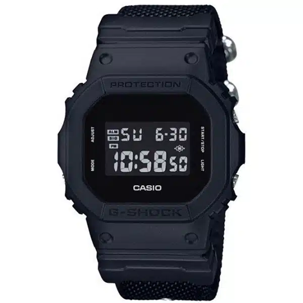 - اصلیترین تفاوت این مدل با سایر ساعتهای سری DW-5600، بند پارچهای CORDURA آن است که مقاومت و دوام بیشتری نسبت به بندهای رزینی استاندارد دارد و ظاهری متفاوت و تاکتیکال به ساعت میبخشد. همچنین رنگبندی تمام مشکی و مات آن نیز جذابیت ویژهای دارد.