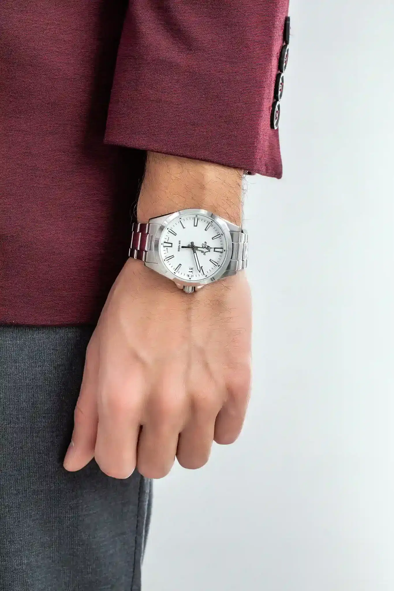 - استفاده از استیل باکیفیت در ساخت قاب و بند ساعت، مقاومت بالایی در برابر زنگزدگی و ساییدگی ایجاد کرده و در عین حال جلوهای حرفهای به ساعت میبخشد.