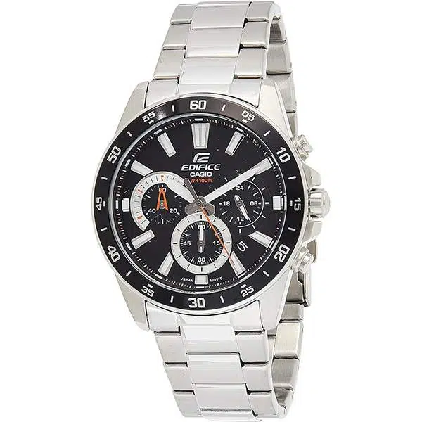 ساعت مچی کاسیو مدل EFV-570D-1AVUDF یک انتخاب ایدهآل برای علاقهمندان به ساعتهای اسپرت و رسمی است که با بدنه و بند از جنس استیل ضدزنگ (Stainless Steel) ساخته شده و از دوام و استحکام بالایی برخوردار است. این ساعت دارای موتور کوارتز دقیق با قابلیت کرونوگراف (Chronograph) برای ثبت زمانهای کوتاه، نمایشگر تاریخ (Date Display) و شیشه معدنی مقاوم در برابر خش (Mineral Glass) است که محافظت قابل قبولی از صفحه ساعت را تضمین میکند. همچنین، مقاومت آب تا 100 متر (10ATM) این مدل، امکان استفاده در فعالیتهای روزمره و ورزشی را بدون نگرانی فراهم میکند. طراحی صفحه با پسزمینه مشکی و جزئیات سفید و نقرهای، خوانایی بالا و ظاهری شیک را در کنار کاراییهای دقیق ساعت ارائه میدهد. این ساعت را میتوانید همراه با فاکتور اصالت و قیمت کالا از فروشگاه حضوری و آنلاین کرنوواچ تهیه کنید.⚙️ مشخصات فنی ساعت کاسیو مدل EFV-570D-1AVUDF: