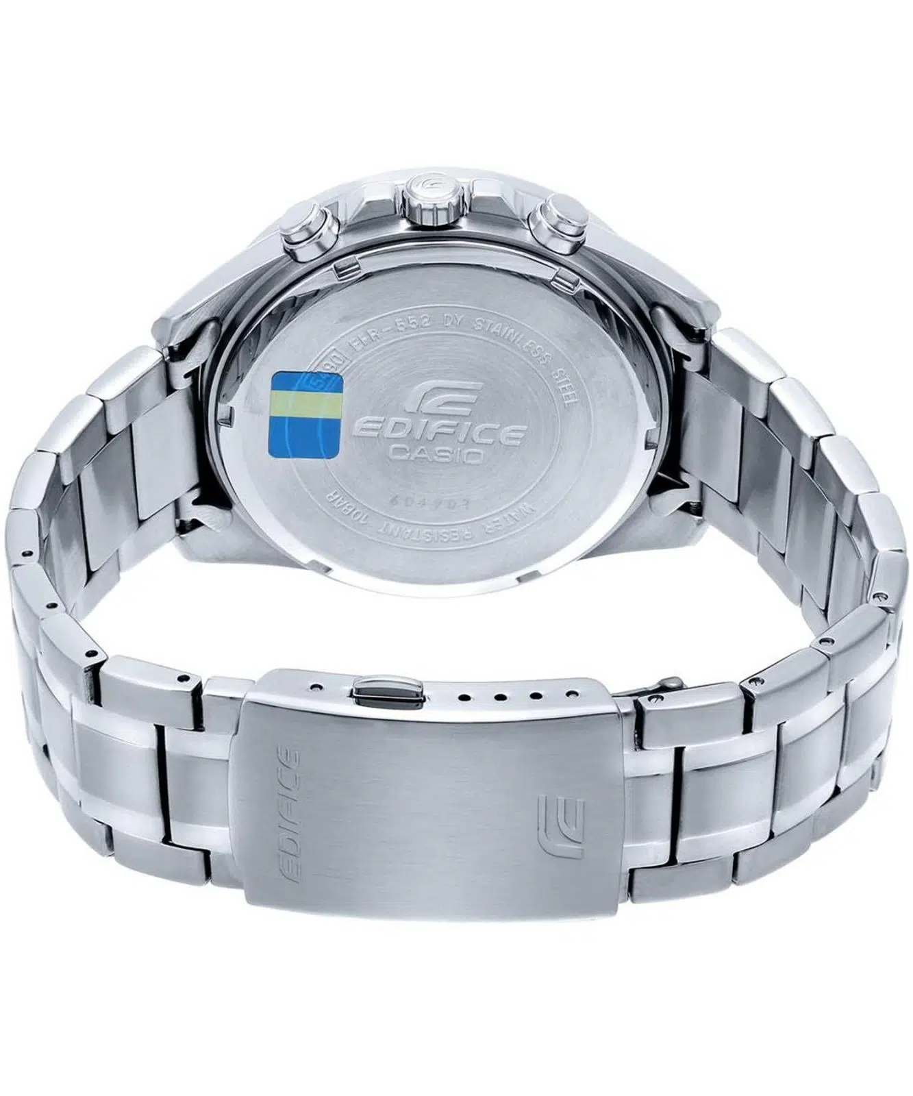 ساعت کاسیو مدل EFV‑570D‑2AVUDF از خانواده EDIFICE، کرنوگرافی استاندارد با طراحی اسپرت-رسمی و جزئیات دقیق است. این مدل دارای صفحهی سرمهای با جزئیات نقرهای بوده و بدنه و بند آن از استیل ضدزنگ ساخته شدهاند. این ساعت مجهز به موتور کوارتز ژاپنی و کرنوگراف با دقت ۱ ثانیه است. همچنین مقاومت 100 متر در برابر آب، شیشه معدنی مقاوم (Mineral Glass)، و عمر باتری حدود ۲ سال از جمله ویژگیهای کلیدی آن هستند.