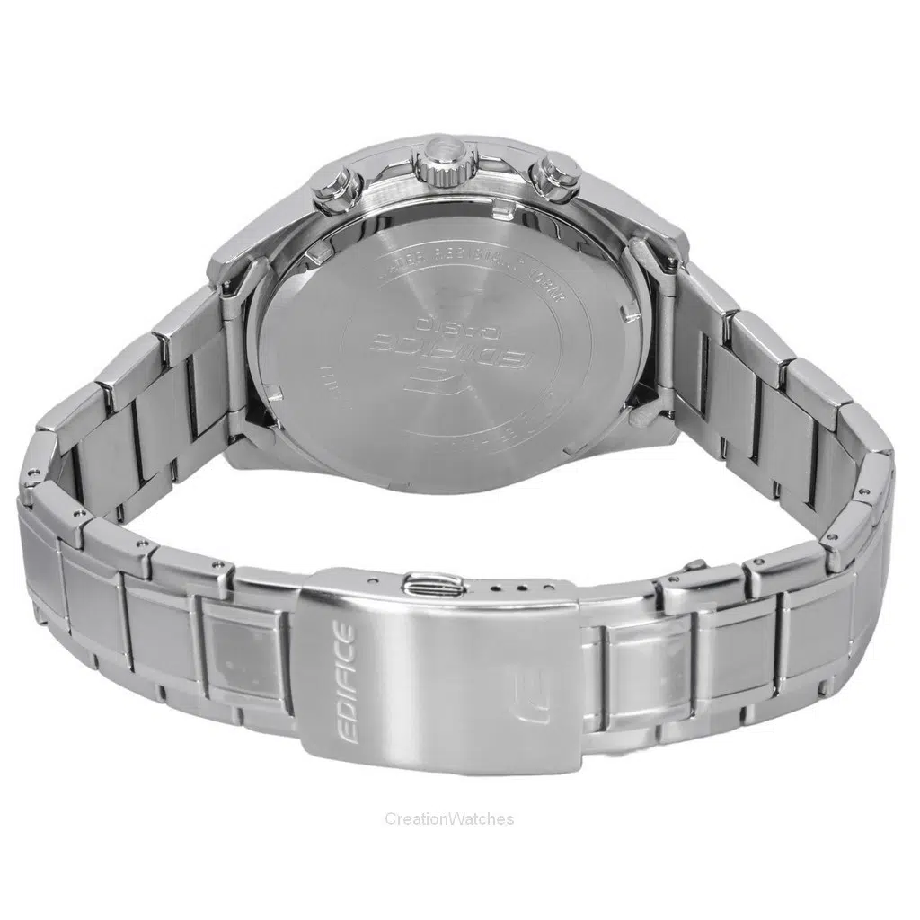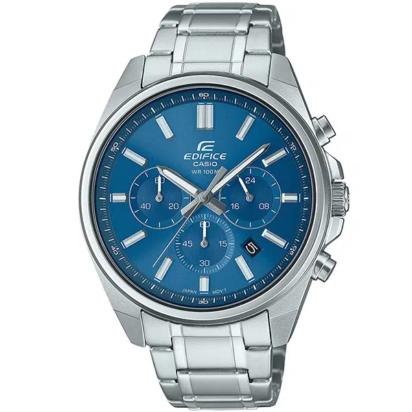 - این ساعت از سری ادیفایس (EDIFICE) کاسیو است و با ظاهری مدرن و الهامگرفته از خودروهای اسپرت، برای استفاده روزمره و محیطهای غیررسمی بسیار مناسب است. صفحه آبیرنگ آن در کنار بدنه و بند استیل، جلوهای جذاب و چشمنواز ایجاد میکند.
