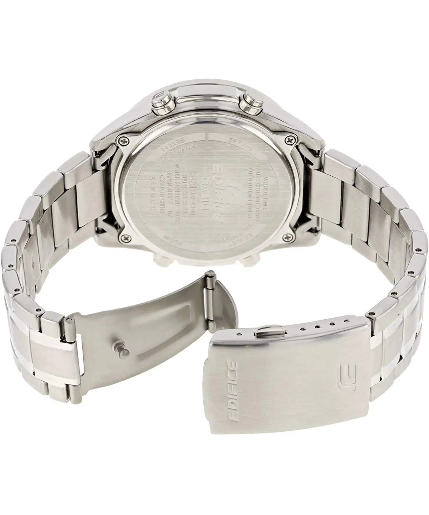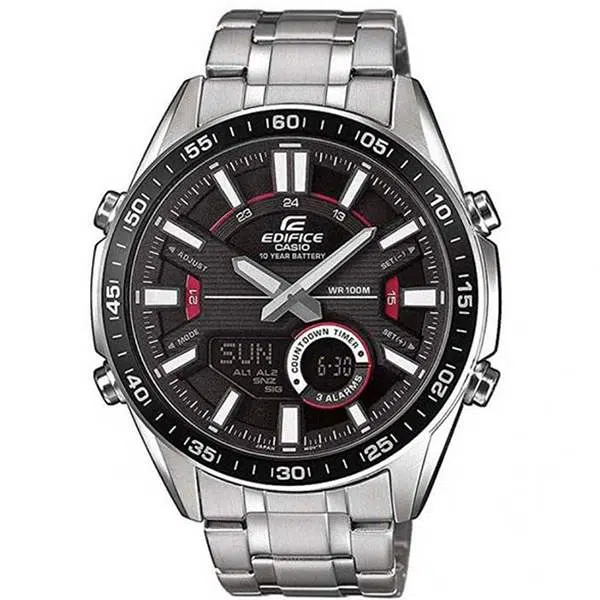 - ساعت EFV-C100D-1AVDF با قاب استیل ضدزنگ و صفحه مشکی با نشانگرهای نقرهای، ظاهری کلاسیک و جذاب دارد که مناسب استفاده روزمره و موقعیتهای رسمی است. این طراحی باعث میشود ساعت هم برای استایلهای رسمی (Formal Wear) و هم کژوال (Casual Wear) بسیار مناسب باشد.