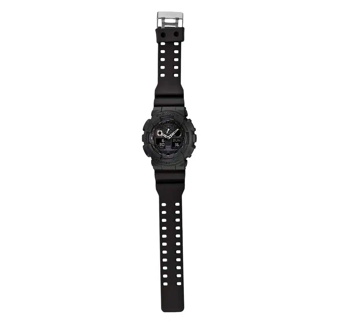 ساعت مچی کاسیو جیشاک مدل GA-100-1A1DR یکی از پرطرفدارترین مدلهای سری جیشاک (G-SHOCK) است که به خاطر طراحی بزرگ (Oversized Case) و کاملاً مشکی (All Black Design) خود، ظاهری بسیار قدرتمند و مردانه دارد. این مدل ترکیبی از نمایشگر آنالوگ و دیجیتال (Analog-Digital) را ارائه میدهد که علاوه بر جلوه مدرن، کارایی بالایی را هم به همراه دارد. قاب و بند آن از رزین مقاوم (Resin) ساخته شده که هم سبک و راحت است و هم در برابر ضربه و سایش مقاومت فوقالعادهای دارد.