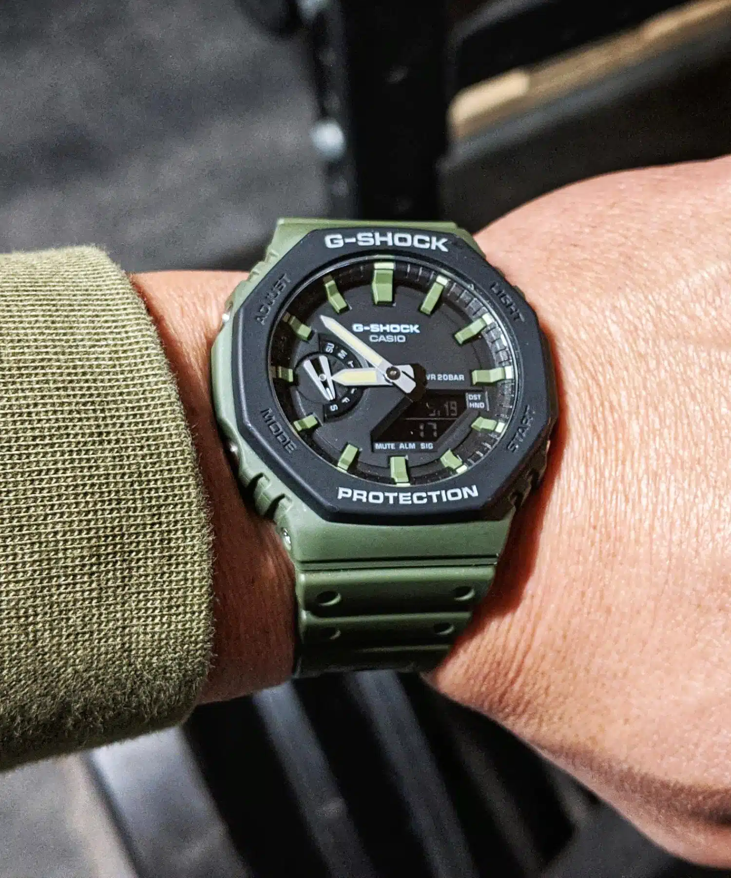 - ظاهر تاکتیکی: رنگ سبز ارتشی (Army Green) آن به همراه طراحی کلی ساعت، ظاهری مدرن، محکم و تاکتیکی به آن میبخشد.