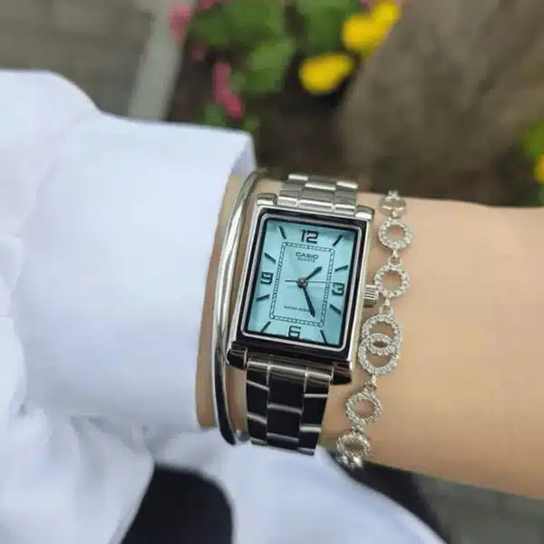 - ساعت مچی کاسیو LTP-1234DD-2ADF، انتخابی ایدهآل برای خانمهای خوشسلیقهای است که به دنبال سادگی و ظرافت هستند. این ساعت با طراحی کلاسیک و بند استیل ضد زنگ، دوام و زیبایی را به همراه میآورد. صفحه آبی فیروزهای و قاب مستطیلی شکل آن، ظاهری منحصر به فرد و چشمنواز به ساعت میبخشد. با موتور کوارتز دقیق و مقاومت در برابر پاشش آب، این ساعت هم برای استفاده روزمره و هم برای مجالس رسمی، انتخابی بینقص و مطمئن است.