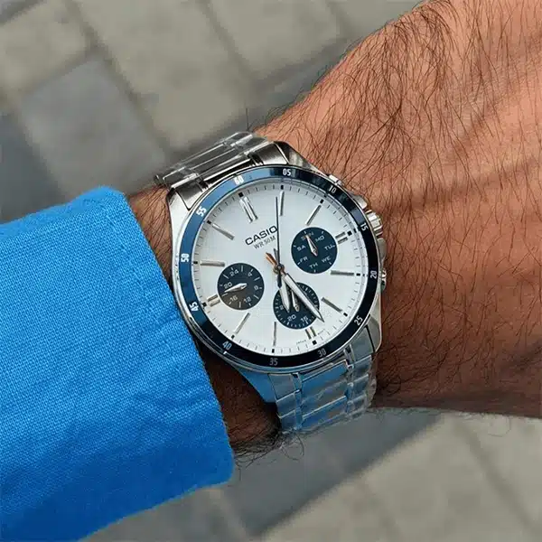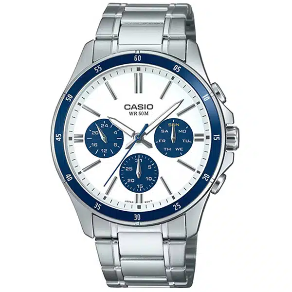 ساعت مچی برند کاسیو مدل MTP‑1374D‑7A2VDF از سری محبوب Enticer با طراحی اسپرت و رسمی، انتخابی ایدهآل برای استفاده روزمره و مهمانیهای شماست. بدنه و بند استیل ضد زنگ، صفحه سفید با سه زیرصفحه آبی (Panda Dial) و مقاومت در برابر آب تا عمق ۵۰ متر، این مدل را هم زیبا و هم کاربردی کرده است. موتور کوارتز ژاپنی با دقت بالا، نمایش روز و تاریخ و عمر باتری ۳ ساله، کیفیت و ماندگاری این ساعت را تضمین میکند. این مدل با ترکیب ظاهری شیک و قیمت مقرونبهصرفه، یک انتخاب هوشمندانه برای آقایان خوشسلیقه است.