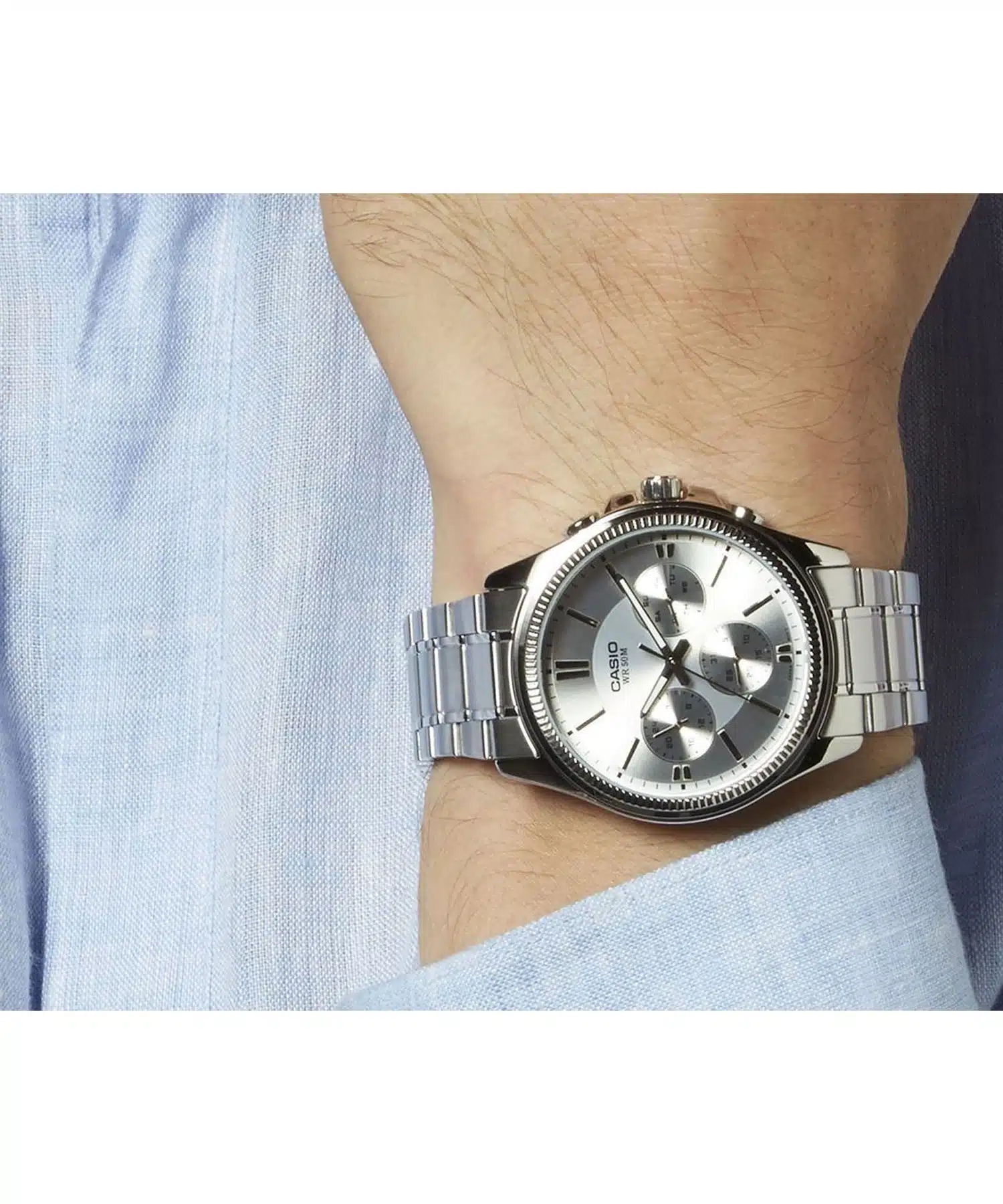 - با داشتن سه صفحه فرعی، این ساعت علاوه بر نمایش زمان، اطلاعات مهمی مانند روز هفته، تاریخ و ساعت ۲۴ ساعته را نیز ارائه میدهد. این ویژگی، ساعت را از یک وسیله ساده برای نمایش زمان، به یک ابزار کاربردیتر تبدیل میکند.