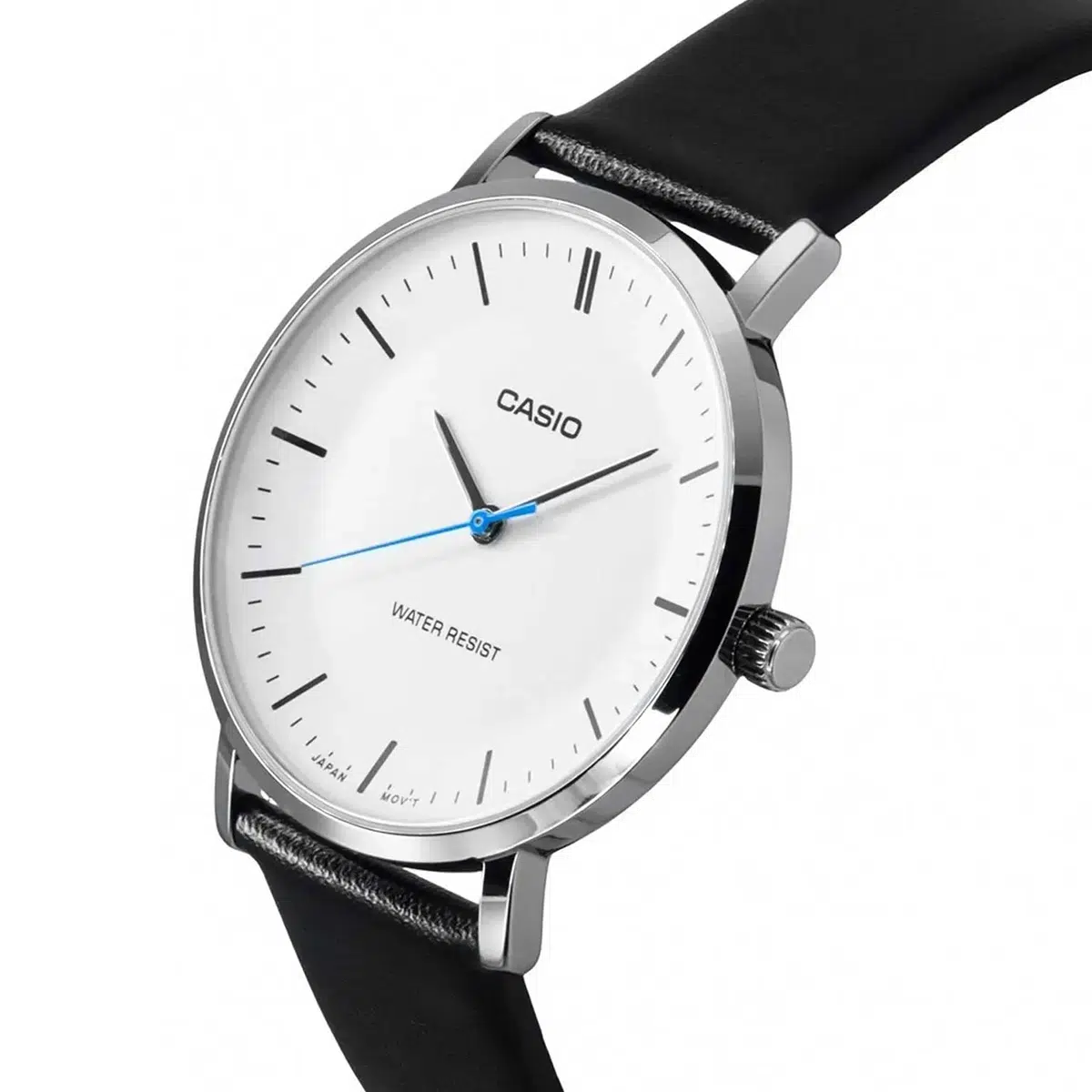 ساعت مچی مردانه کاسیو مدل MTP-VT04L-7E انتخابی ایدهآل برای آقایانی است که به دنبال یک ساعت کلاسیک، مینیمال و قابل اعتماد برای استفاده روزانه هستند. این مدل از سری جنرال کاسیو، با طراحی ساده و صفحه نمایش خوانای سفید یا نقرهای روشن و بند چرمی مشکی با کیفیت، جلوهای شیک و همهپسند را به استایل شما میبخشد. موتور کوارتز دقیق ژاپنی و مقاومت در برابر پاشش آب (مناسب برای استفاده روزمره)، این ساعت را به یک همراه بادوام و کاربردی تبدیل کرده است. قاب باریک 8.2 میلیمتری و وزن سبک 44 گرمی آن نیز راحتی فوقالعادهای را روی مچ دست تضمین میکند.