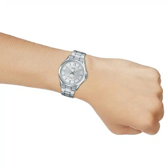 ساعت مچی کاسیو MTS-100D-7AVDF، انتخابی بینظیر برای کسانی است که به دنبال سادگی و کیفیت هستند. این ساعت با طراحی کلاسیک و صفحهنمایش نقرهای، ظاهری شیک و رسمی دارد که برای هر موقعیتی مناسب است. مهمترین ویژگی این مدل، شیشه سافایر ضد خش آن است که تضمین میکند ساعت شما برای سالها شفاف و بدون خط و خش باقی بماند. همچنین، با عمر باتری ۱۰ ساله، دیگر نگران تعویض زودهنگام باتری نخواهید بود. MTS-100D-7AVDF، ترکیبی از زیبایی، دوام و دقت در یک قاب است.