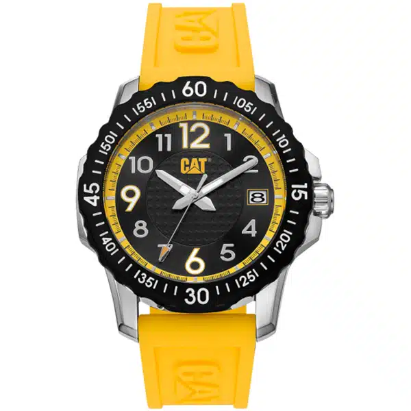 - ظاهر این ساعت با ترکیب رنگهای مشکی، زرد و نقرهای، قدرتمند و چشمنواز است. طراحی آن یادآور ماشینآلات سنگین کاترپیلار است و به استایل شما جلوهای خاص و متفاوت میبخشد.