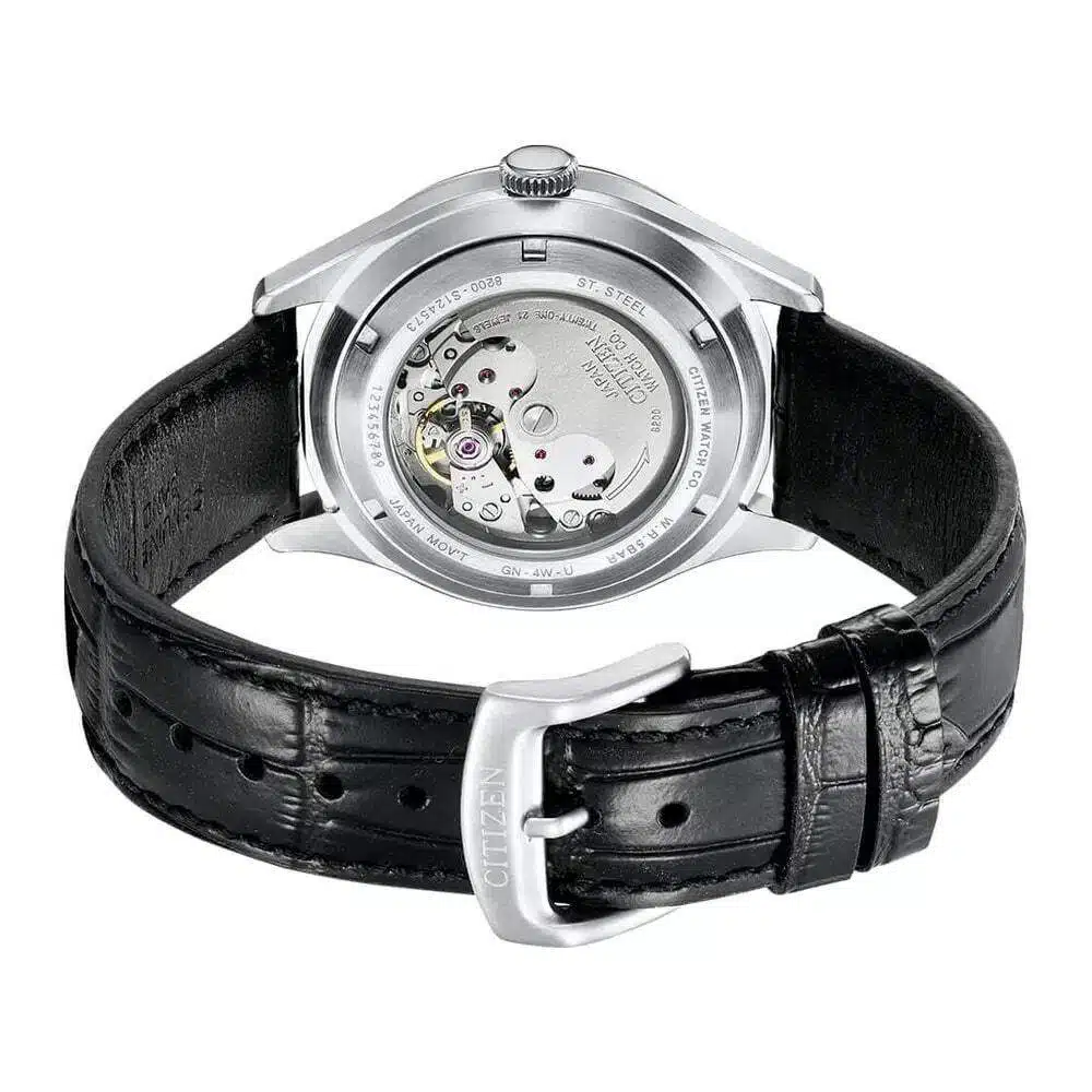 نوع موتور: اتوماتیک (خودکار – Automatic) با کالیبر موتور: 8200 (ساخت خود سیتیزن – Miyota 8200) تعداد جواهرات (سنگ قیمتی): 21 جواهر (Jewels) ذخیره انرژی (Power Reserve): حدود 40 تا 42 ساعت دقت: دقت متوسط موتورهای اتوماتیک سیتیزن (معمولاً در حد +/− 20 ثانیه در روز) کوک دستی (Hand-winding): امکان شارژ ساعت با چرخاندن دسته کوک (Crown) توقف ثانیه شمار (Hacking / Second Hand Stop): امکان توقف عقربه ثانیه شمار برای تنظیم دقیق زمان (برای هماهنگ کردن با زمان مرجع)جنس قاب: استیل ضد زنگ (Stainless Steel)