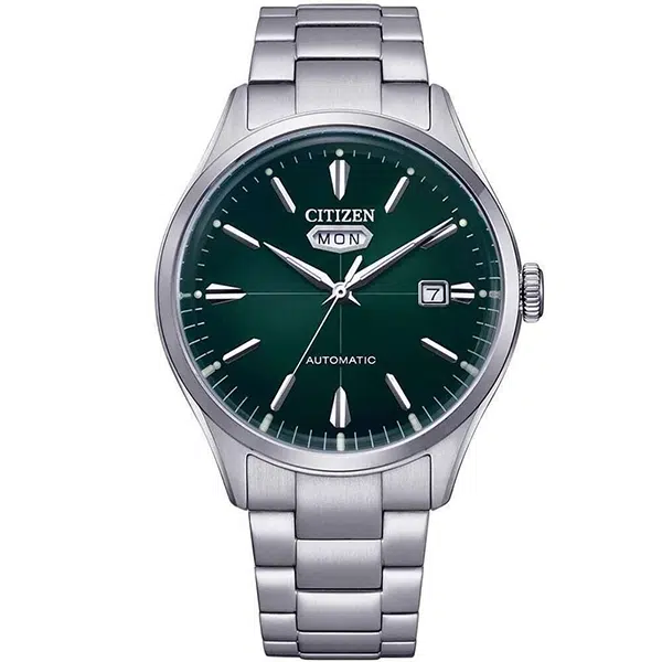 قاب استیل ضد زنگ با قطر 40.2 میلیمتر و صفحه سبز رنگ، ظاهری شیک و کلاسیک به ساعت میبخشد. این طراحی الهامگرفته از مدلهای قدیمی سیتیزن است و برای استفاده روزمره و رسمی مناسب است.