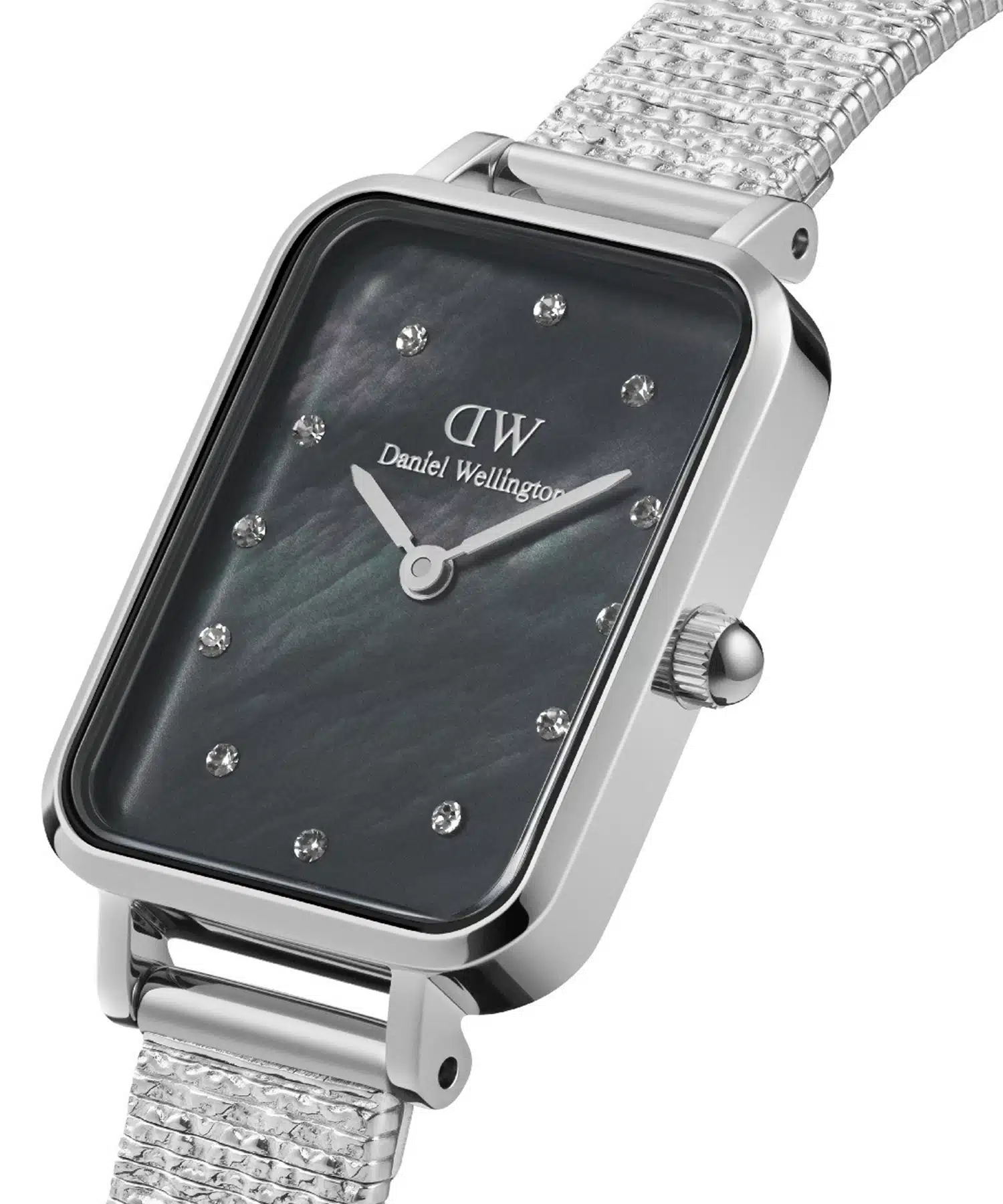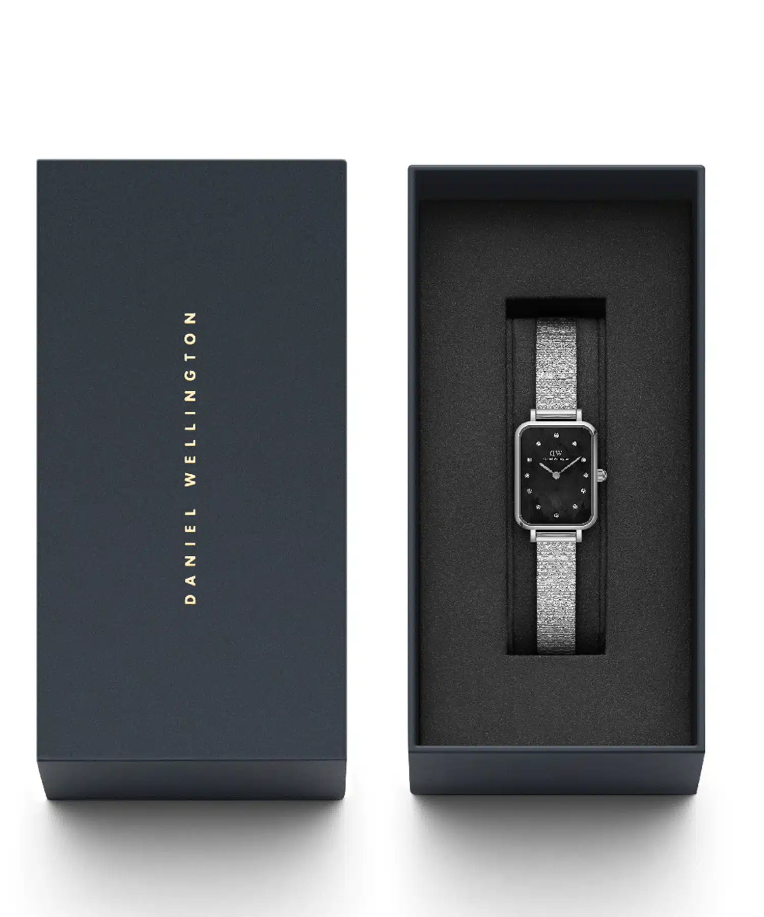 ساعت مچی دنیل ولینگتون DW00100581 (از کالکشن Quadro Lumine Pressed Piano Sterling) یک ساعت زنانه مینیمال مجلسی با قاب مستطیلی (20×26 mm) و با بند نقرهای است که ویژگی بارز آن صفحه مشکی صدف طبیعی (Black Mother of Pearl) مزین به نگینهای کریستالی (Lumine) است؛ این ترکیب، یک مدل شیک و متفاوت با تم رنگی سرد و تیره ارائه میدهد که ظاهری لوکس و جذاب دارد. با خرید ساعت مچی زنانه از فروشگاه کرنوواچ با دریافت گارانتی شرکتی و فاکتور اصالت کالا خریدی مطمئن را تجربه کنید.