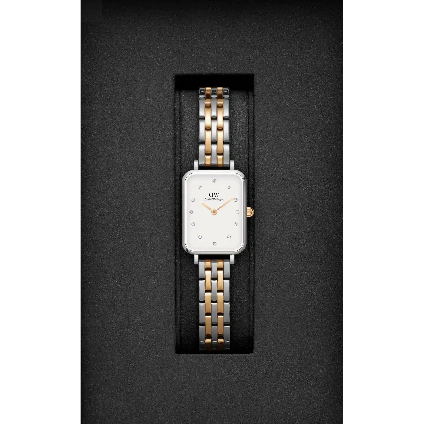 - این مدل با نگینها و طراحی دو رنگ، ظاهر مجلسیتری نسبت به مدلهای سادهتر DW دارد. در حالی که هنوز میتوان آن را روزمره پوشید، بیشتر مناسب موقعیتهای نیمهرسمی، مهمانیها، یا زمانی است که میخواهید ظاهر شما کمی درخشانتر باشد.