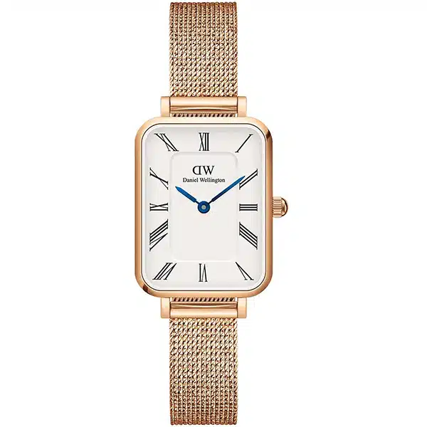 ساعت مچی دنیل ولینگتون DW00100687 یک ساعت زنانه شیک و ظریف با قاب مستطیلی (ابعاد 20×26 mm) به رنگ رزگلد است که با صفحه سفید مینیمال دارای نشانگرهای اعداد رومی و بند حصیری (Mesh) رزگلد، ظاهری کلاسیک-مدرن، لوکس و زنانه ارائه میدهد و مانند سایر مدلهای DW دارای ضخامت قاب بسیار کم و موتور کوارتز است. با خرید این مدل از فروشگاه کرنوواچ با دریافت گارانتی شرکتی و فاکتور اصالت کالا خریدی مطمئن را تجربه کنید.