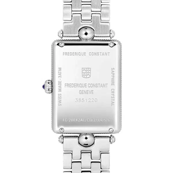 مدل FC‑200MPW2AC6B که در مجموعه Classics Art Déco Carrée قرار دارد، برگرفته از طراحی مینیمال و لوکس دهههای ۲۰ و ۳۰ میلادی است. بدنهای مستطیلی با فریم صیقلی و بند فلوتدار این ساعت را به انتخابی شکیل برای بانوانی تبدیل میکند که ترجیح میدهند ساعتی ظریف اما چشمنواز بر مچ داشته باشند.⚙️ مشخصات فنی ساعت فردریک کنستانت مدل FC-200MPW2ACD6B: