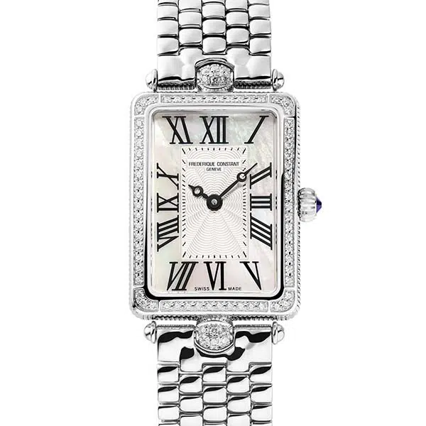 - قاب مستطیلی این ساعت فردریک کنستانت زنانه با الهام از سبک هنری آرت دکو، نمایانگر ترکیبی از ظرافت و سادگی است که آن را برای استفاده در موقعیتهای رسمی و روزمره بانوان بسیار مناسب میکند.