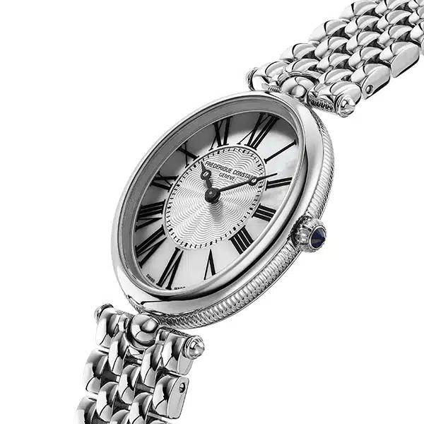 ساعت مچی زنانه Frederique Constant مدل FC-200MPW2V6B از مجموعه «Classics Art Déco Oval» ترکیبی از طراحی کلاسیک دهه ۱۹۲۰ با ظرافت مدرن است. این مدل با الهام از سبک آرت دکو، ظاهری زنانه دارد که برای استفاده روزمره و مجالس رسمی مناسب است.این ساعت انتخابی ایدهآل برای بانوانی است که به دنبال ترکیبی از طراحی کلاسیک، کیفیت سوئیسی و ظرافت زنانه هستند. این مدل نهتنها یک ابزار زمانسنجی بلکه یک قطعه جواهر زیبا برای استفاده روزمره و مناسبتهای خاص است.