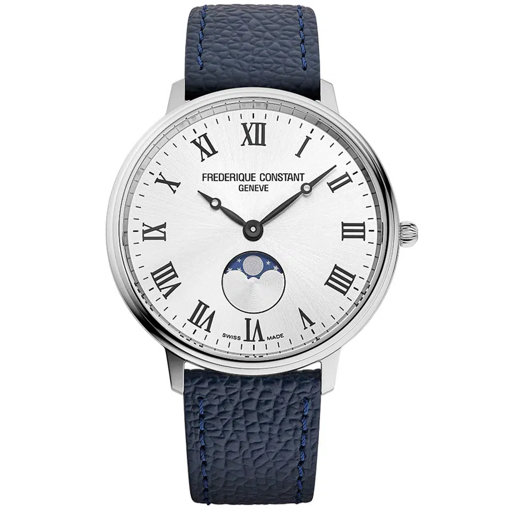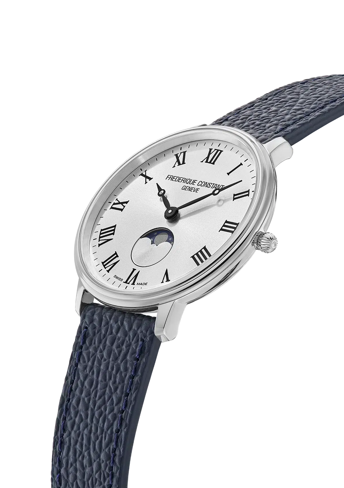 - با قطر ظریف 39 میلیمتر و ضخامت بسیار کم 7.65 میلیمتر، این ساعت یک مدل رسمی (Dress Watch) ایدهآل است. طراحی آن با اعداد رومی، صفحه سانری نقرهای و بند چرمی آبی، آن را برای هر مناسبت رسمی یا کاری مناسب میسازد.