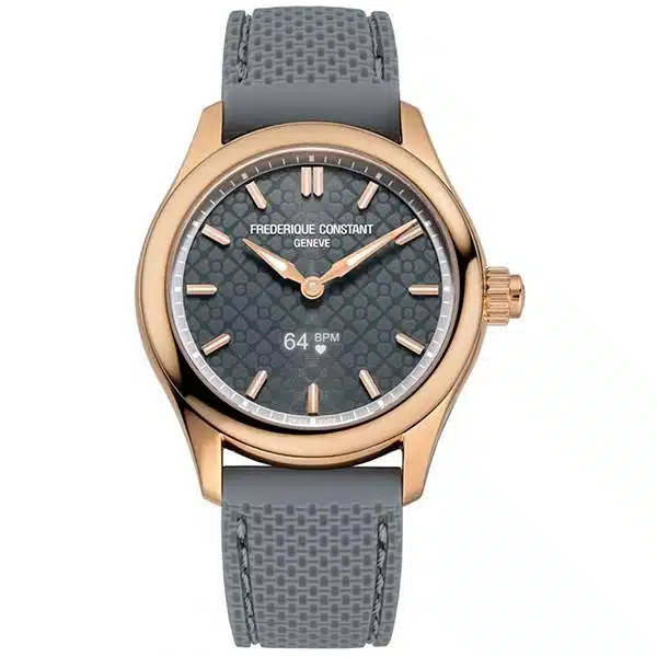 ساعت هوشمند زنانه فردریک کنستانت (Frederique Constant) ، با شناسه محصول FC-286LGS3B4 از خانواده Smartwatch، با موتور سوییسی بوده که سازوکار یا مکانیزم آن کوارتز(Quartz) میباشد . جنس قاب این ساعت از استیل ضد زنگ و رنگ آن رز گلد است . از دیگر ویژگی های ظاهری این ساعت، صفحه ی گرد با رنگ صفحه خاکستری که جنس بند آن رابر(سیلیکون) با رنگ خاکستری می باشد. نوع قفل این ساعت سگکی ساده است و این ساعت دارای کرنوگراف نیز می باشد.مشاهده بیشتر
