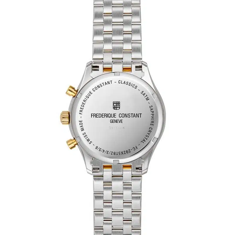 این ساعت از مجموعه Classics Chronograph طراحیای بسیار متوازن و کلاسیک دارد. ترکیب صفحهی آبی تیره با بند استیل دو رنگ (طلایی و نقرهای)، جلوهای رسمی و در عین حال لوکس به آن میدهد.