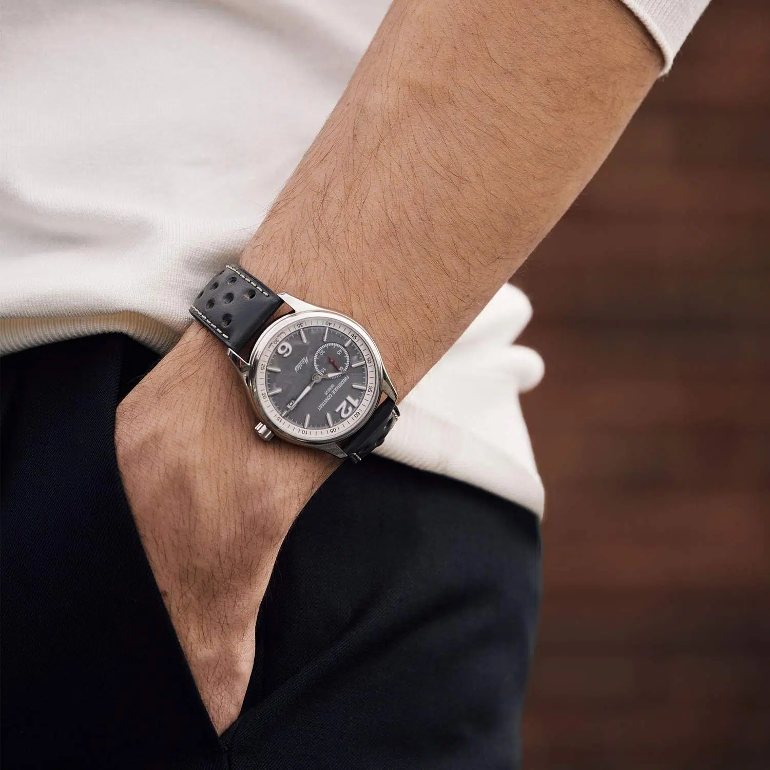 فردریک کنستانت FC-345HGS5B6 از خانواده Vintage Rally، با موتور مکانیکی اتوماتیک، قاب نقرهای استیل ضد زنگ، صفحه طوسی و بند چرمی هماهنگ، مدلی است که بیش از یک ساعت معمولی به نظر میرسد. این ساعت نمادی از مینیمالیسم، اصالت و سبک زندگی شیک است؛ انتخابی بینقص برای آقایانی که به دنبال ترکیب سادگی و کیفیت در یک اکسسوری لوکس هستند.