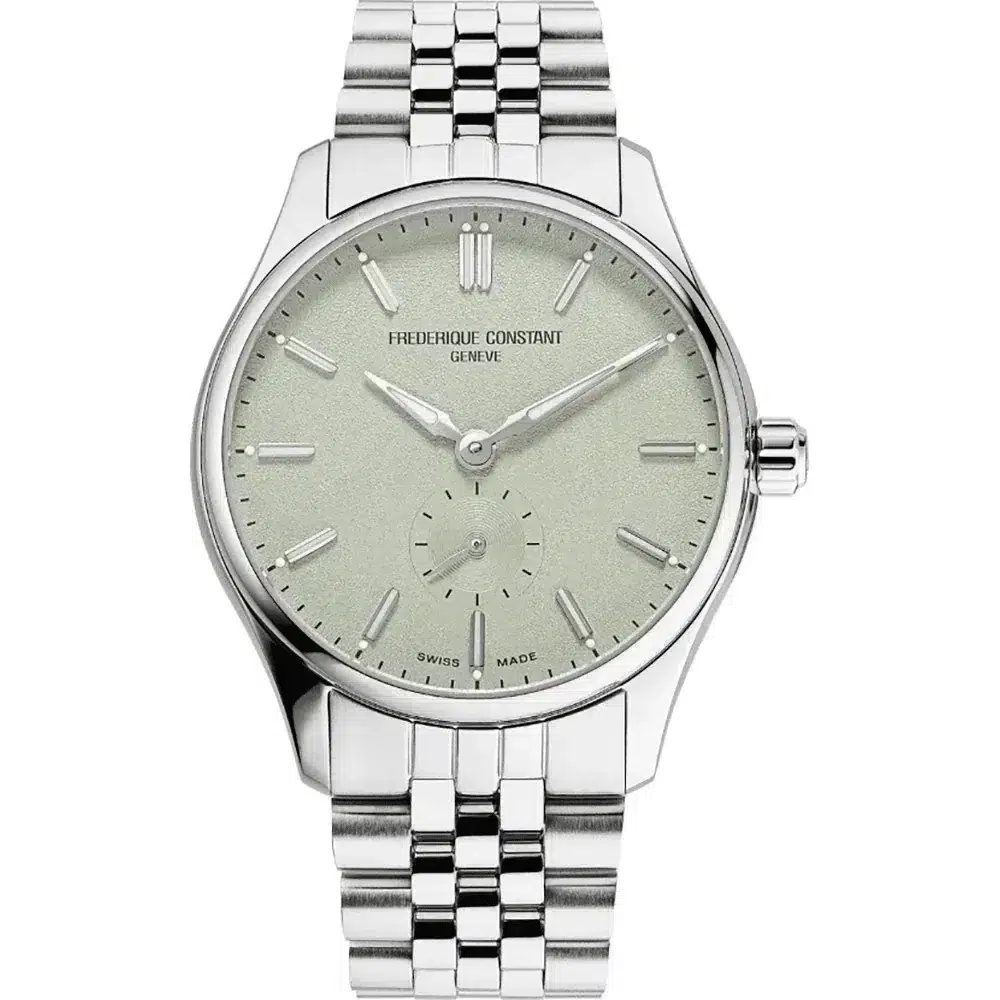 - ساعت Frederique Constant Classics Index Small Seconds مدل FC-530GR3B6B انتخابی لوکس و چشمنواز برای آقایانی است که بهدنبال تمایز هستند. این ساعت با قلب مکانیکی اتوماتیک سوئیسی (کالیبر FC-530) و قطر ایدهآل 39 میلیمتری، دقت و ظرافت اصیل ژنو را به مچ دست شما میآورد. صفحه سبز درخشان آن با طرح Sunray و ویژگی کلاسیک ثانیهشمار کوچک در ساعت 6، کنتراست زیبایی با قاب و بند استیل ضدزنگ نقرهای ایجاد میکند. شیشه کریستال یاقوتی ضد خش و مقاومت 50 متری در برابر آب، تضمینکننده دوام و اصالت این محصول هستند.