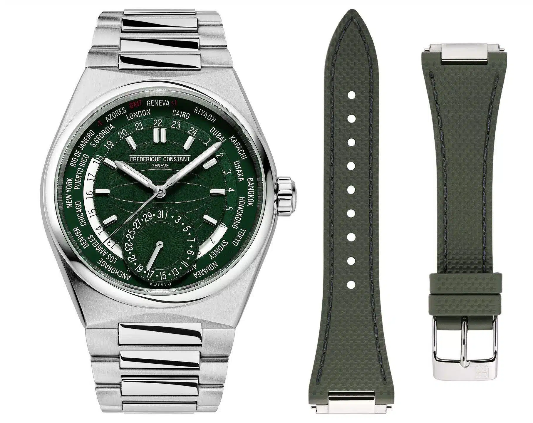 - این ساعت بهطور همزمان قادر است زمان ۲۴ منطقه زمانی مختلف را با دقت و وضوح نمایش دهد؛ عملکردی حرفهای که آن را به گزینهای ایدهآل برای مسافران بینالمللی تبدیل میکند.