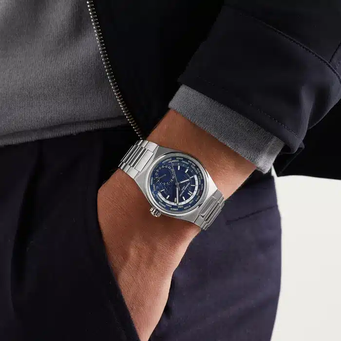 بله، این مدل امکان نمایش همزمان ۲۴ منطقه زمانی را داشته و تنظیم آن بهراحتی از طریق تاج ساعت انجام میشود.