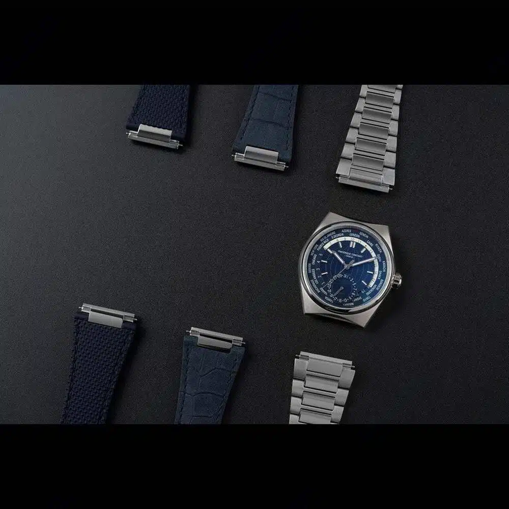 این مدل ساعت فردریک کنستانت مردانه امکان نمایش همزمان ساعت ۲۴ منطقه زمانی مختلف جهان را دارد که تمام تنظیمات آن تنها از طریق تاج ساعت انجام میشود، بدون نیاز به دکمههای اضافی. این ویژگی، کاربری آن را برای مسافران و افرادی که به زمانبندی بینالمللی نیاز دارند بسیار ساده و کاربردی میکند.