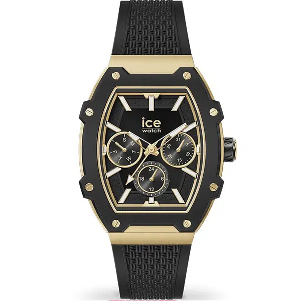 ساعت آیس واچ مدل 022865 یک ساعت زنانه اسپرت با طراحی قوی و شیک است که دارای بند سیلیکونی/رابر مشکی و قابی به ابعاد 34*40 میلیمتر میباشد؛ ویژگیهای برجسته این مدل، صفحه چندکاره (نمایش دهنده تقویم کامل شامل تاریخ، روز هفته و شبانهروز) و قاب چند ضلعی (مستطیلی) آن است که در ترکیب با جزئیات طلایی و صفحه مشکی، ظاهری لوکس، فنی و کاربردی دارد و با مقاومت 50 متری در برابر آب، برای استفاده روزانه عالی است.