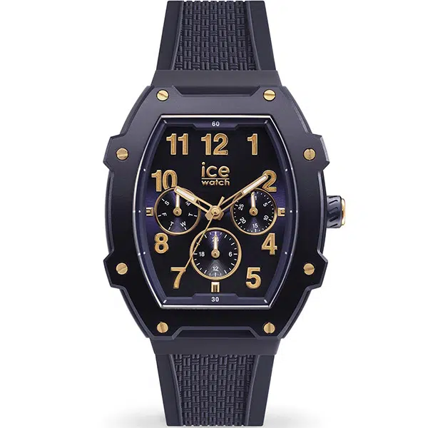 ساعت آیس واچ مدل 023314 یک ساعت مردانه اسپرت با ظاهر کلاسیکتر نسبت به مدلهای رنگی آیس واچ است که دارای قاب چندضلعی و بند یکپارچه سیلیکونی/رابر به رنگ سرمهای است؛ این ساعت با قطر 40 میلیمتر، موتور چندکاره و صفحه سرمهای با جزئیات طلایی، قابلیت نمایش تاریخ کامل (روز ماه، روز هفته و نشانگر شب/روز) را داراست و مقاومت آن در برابر آب تا 30 متر است.