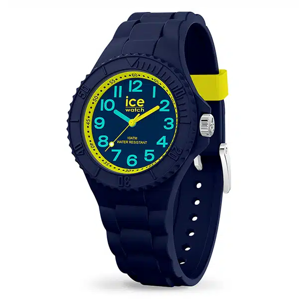 - ساعت آیس واچ مدل 020320 (از مجموعه ICE Hero – Dark Blue) یک ساعت بچهگانه (دخترانه و پسرانه) با طراحی ساده و تماماً سرمهای تیره است که دارای قاب و بند سیلیکونی/رزین به قطر بسیار کوچک 30 میلیمتر میباشد؛ این ساعت آنالوگ کوارتز، به دلیل ساختار مقاوم و سبک و مقاومت بالا در برابر آب تا 100 متر، برای استفاده روزمره و فعالیتهای آبی کودکان ایدهآل است.