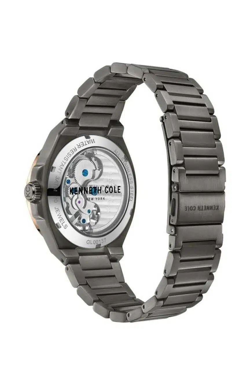 - ساعت KCWGL0013703 یک ساعت مچی مردانه از برند کنت کول (Kenneth Cole) با استایل مکانیکی و لوکس است. این مدل از یک موتور اتوماتیک (مکانیکی) نیرو میگیرد و دارای قاب و بند استیل خاکستری (Gunmetal) میباشد. جذابیت اصلی آن در قاب خاکستری و رزگلد، صفحه اسکلتون با قاب پشتی شفاف و عقربههای شبنما است که آن را به انتخابی پیچیده و مدرن برای آقایان تبدیل کرده است.
