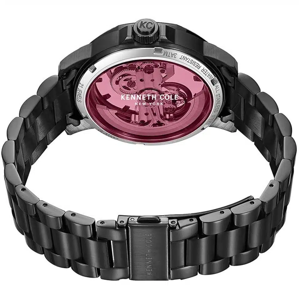- ساعت Kenneth Cole New York مدل KCWGL0033703 یک ساعت مچی مردانه اتوماتیک (مکانیکی) از خانواده AUTOMATIC است که با قاب و بند استیل ضد زنگ مشکی، صفحه مشکی و قرمز با طراحی قلب باز (Open Heart) برای نمایش رقص موتور در حال کار، و قطر قاب 41 میلیمتری، ظاهری جسورانه، اسپرت و شبک دارد و تا ۳۰ متر در برابر آب مقاومت میکند.