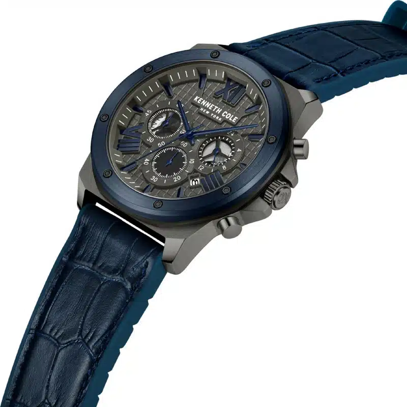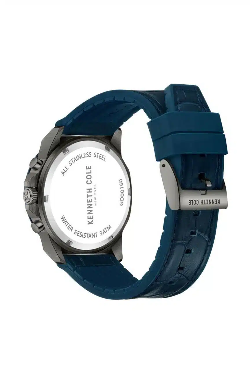 - ساعت مچی KCWGO0016002 از برند کنت کول (Kenneth Cole)، یک ساعت مردانه کوارتز کرونوگراف (زمانسنج) با استایل اسپرت-رسمی است؛ این مدل با قاب استیل ضدزنگ خاکستری تیره/دودی (Gunmetal) به قطر بزرگ 45 میلیمتر، صفحه دودی (Gunmetal) و بند سیلیکونی با روکش چرم عرضه شده است. این ساعت با داشتن قابلیتهای کرونوگراف و نمایش تاریخ روز یک انتخاب کاربردی و جذاب برای استفاده روزمره و مجلسی است و تا عمق 30 متر در برابر آب مقاوم میباشد.
