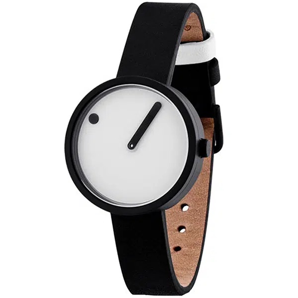 ساعت مچی زنانه پیکتو مدل P43343-4112MB که اصالتاً دانمارکی است، با تمرکز بر طراحی مینیمالیستی و نمادین برند پیکتو، یک ساعت اسپرت و کلاسیک بهشمار میرود که زمان را تنها با یک نقطه (نشانگر ساعت) روی صفحهی چرخان و یک عقربه خطی (نشانگر دقیقه) نمایش میدهد. این مدل زنانه دارای قاب گرد با قطر 34 میلیمتر از جنس استیل ضد زنگ مشکی، صفحه سفید رنگ، موتور کوارتز ساخت شرکت میوتا (ژاپن) و شیشه مقاوم کریستال معدنی است. بند این ساعت picto از چرم مشکی با قفل سگکی ساده بوده و مقاومت در برابر آب آن تا ۵۰ متر (مناسب برای پاشش آب) است که آن را به انتخابی شیک و ساده برای استایلهای روزمره و رسمی بانوان تبدیل میکند.