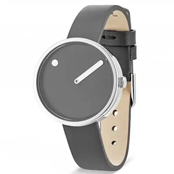 ساعت مچی پیکتو مدل P43351-6212S یک ساعت زنانه با اصالت دانمارکی است که با تمرکز بر مینیمالیسم، زمان را به جای عقربههای سنتی، با یک نقطه متحرک روی صفحه چرخان برای نشان دادن ساعت و یک خط (عقربه) برای دقیقه نمایش میدهد. این مدل ساعت picto دارای قاب گردی از جنس استیل ضد زنگ نقرهای با قطر کوچک و ظریف ۳۴ میلیمتر است که برای مچ دست خانمها طراحی شده است. صفحه ساعت به رنگ خاکستری بوده و با یک بند چرمی خاکستری با قفل سگکی ساده همراه است. این ساعت از موتور کوارتز ژاپنی (میوتا) بهره میبرد و مقاومت آن در برابر آب تا ۵۰ متر (5 اتمسفر) است، که این مدل را به یک اکسسوری روزمره شیک و متفاوت با تم رنگی خنثی و مدرن تبدیل میکند.