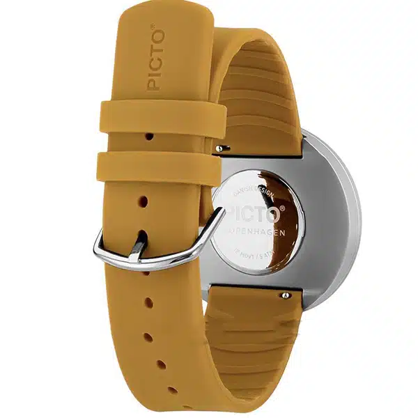 - بند سیلیکونی با رنگ زرد خردلی و عرض 20 میلیمتر، سبکی و راحتی را در هنگام استفاده فراهم میکند. این طراحی مناسب برای استفاده روزمره و موقعیتهای مختلف است.
