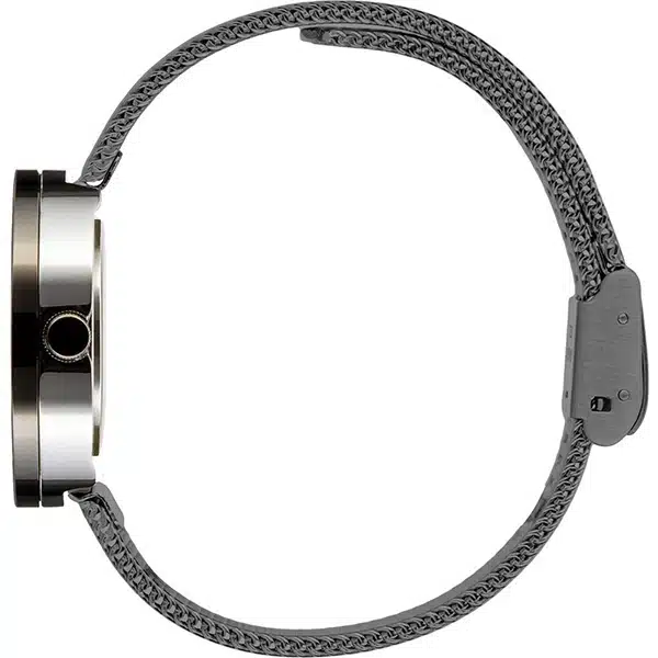 - بند این ساعت از استیل ضدزنگ با طراحی مش حصیری ساخته شده است که علاوه بر زیبایی، دوام بالایی دارد.