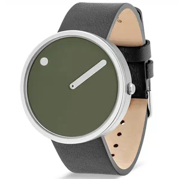 - ساعت پیکتو مدل P43396-6220S با طراحی ساده و شیک خود، جلوهای مدرن و هنری دارد. رنگ سبز زیتونی صفحهنمایش، علاوه بر جذابیت بصری، حس آرامش و طبیعت را منتقل میکند. این طراحی مینیمالیستی باعث میشود ساعت بهعنوان یک اکسسوری هنری و مدرن در کنار لباسهای روزمره یا نیمهرسمی شما بدرخشد.