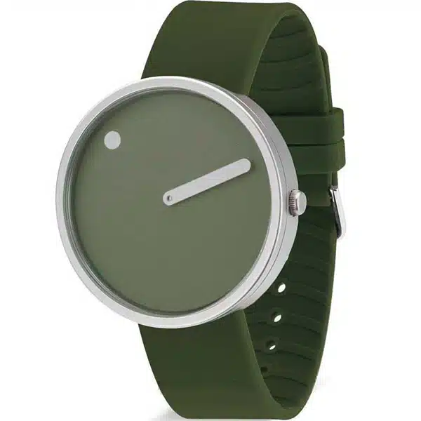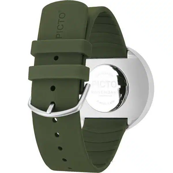 ساعت مچی پیکتو (PICTO) مدل P43396-7764S با طراحی مینیمالیستی اسکاندیناوی ساخته شده و بهجای عقربههای رایج، تنها از یک نقطه برای ساعت و یک خط برای دقیقه استفاده میکند که آن را به یک اکسسوری هنری بدل میسازد. قاب استیل ضدزنگ نقرهای در کنار بند رزینی زیتونیرنگ، ترکیبی مدرن و سبک ایجاد کرده و موتور کوارتز دقیق ژاپنی عملکردی مطمئن فراهم میآورد. این ساعت بهخاطر سادگی جسورانه و طراحی متفاوت، بیش از آنکه یک ابزار زمانسنجی صرف باشد، نمادی از سبک و هویت طراحی دانمارکی بهشمار میرود.