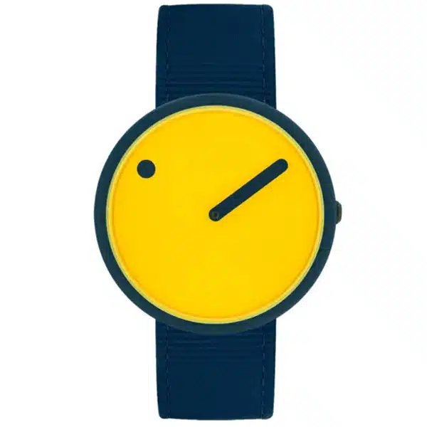 - ساعت مچی پیکتو مدل PR44024-R001 یک مدل اسپرت و یونیسکس با طراحی جسورانه و مینیمال دانمارکی است که به دلیل ترکیب رنگ خاص خود متمایز میشود؛ این ساعت با قاب گرد ۴۰ میلیمتری از جنس رزین و صفحه نمایش زرد روشن عرضه شده است که نمایش زمان در آن به سبک نمادین پیکتو (یک نقطه برای ساعت و یک عقربه خطی برای دقیقه) انجام میشود؛ مدل PR44024-R001 که دارای موتور کوارتز و شیشه کریستال معدنی است، با یک بند برزنتی یا پارچهای سرمهای/آبی تیره عرضه میشود تا تضاد رنگی چشمنوازی با صفحه زرد ایجاد کند و برای استفاده روزانه و کژوال بسیار مناسب است.