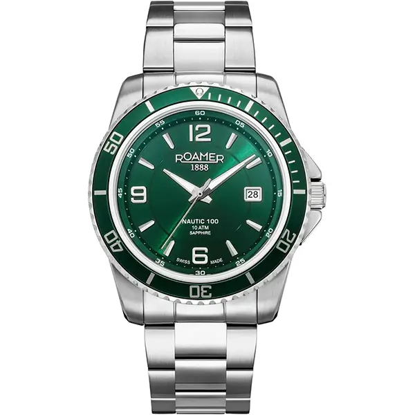 ساعت مچی رومر (ROAMER) با رفرنس 50 75 41 220858، انتخابی بینظیر برای آقایانی است که به دنبال ساعتی با طراحی کلاسیک و عملکردی قدرتمند هستند. این مدل با صفحه سبز جذاب و بدنه استیل ضد حساسیت، ظاهری اسپرت و در عین حال شیک ارائه میدهد. شیشه سافایر ضد خش، موتور کوارتز سوئیسی و مقاومت در برابر آب تا عمق 200 متر، این ساعت را به گزینهای ایدهآل برای استفاده روزمره، ورزشی و حتی غواصی تبدیل کرده است. با خرید این ساعت، کیفیت، دوام و زیبایی را یکجا تجربه کنید.