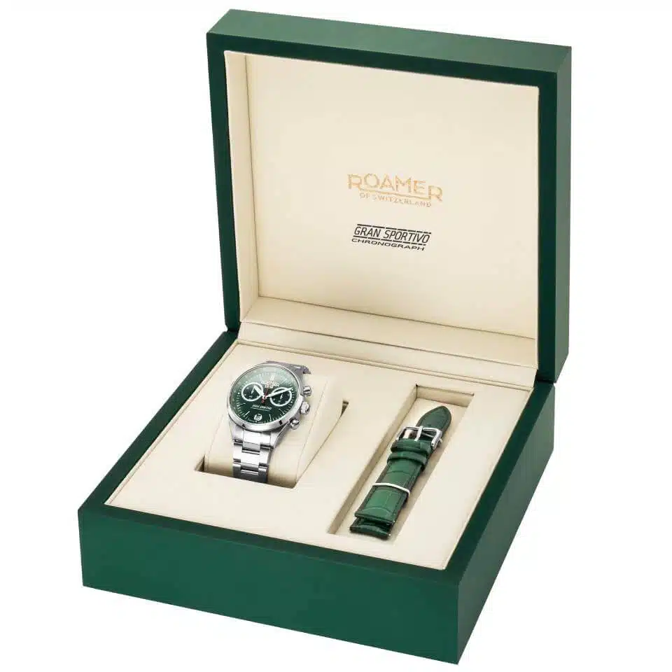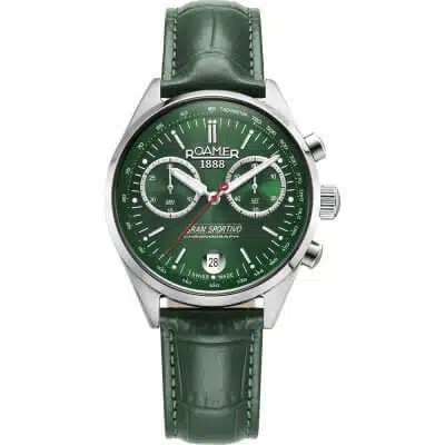 - معرفی ساعت مچی مردانه رومر مدل Gran Sportivo 978818 41 75 20 این ساعت Swiss Made از سری Gran Sportivo رومر، ترکیبی بینظیر از عملکرد اسپرت و طراحی کلاسیک است. با موتور کوارتز سوئیسی دقیق (Ronda)، این مدل کرونوگراف (زمانسنج) با دقت بالا را در اختیار شما قرار میدهد. صفحه خورشیدی سبز تیره (Green Sunray) چشمنواز آن توسط شیشه ضد خش و ضد بازتاب یاقوت کبود محافظت میشود. قاب و بند استیل ضد زنگ، در کنار مقاومت 100 متری در برابر آب، تضمینکننده دوام و استحکام این ساعت برای استفاده روزمره و فعالیتهای آبی است. این مدل، انتخابی ایدهآل برای آقایانی است که به دنبال یک ساعت سوئیسی باکیفیت، لوکس و کاربردی با اصالت هستند.