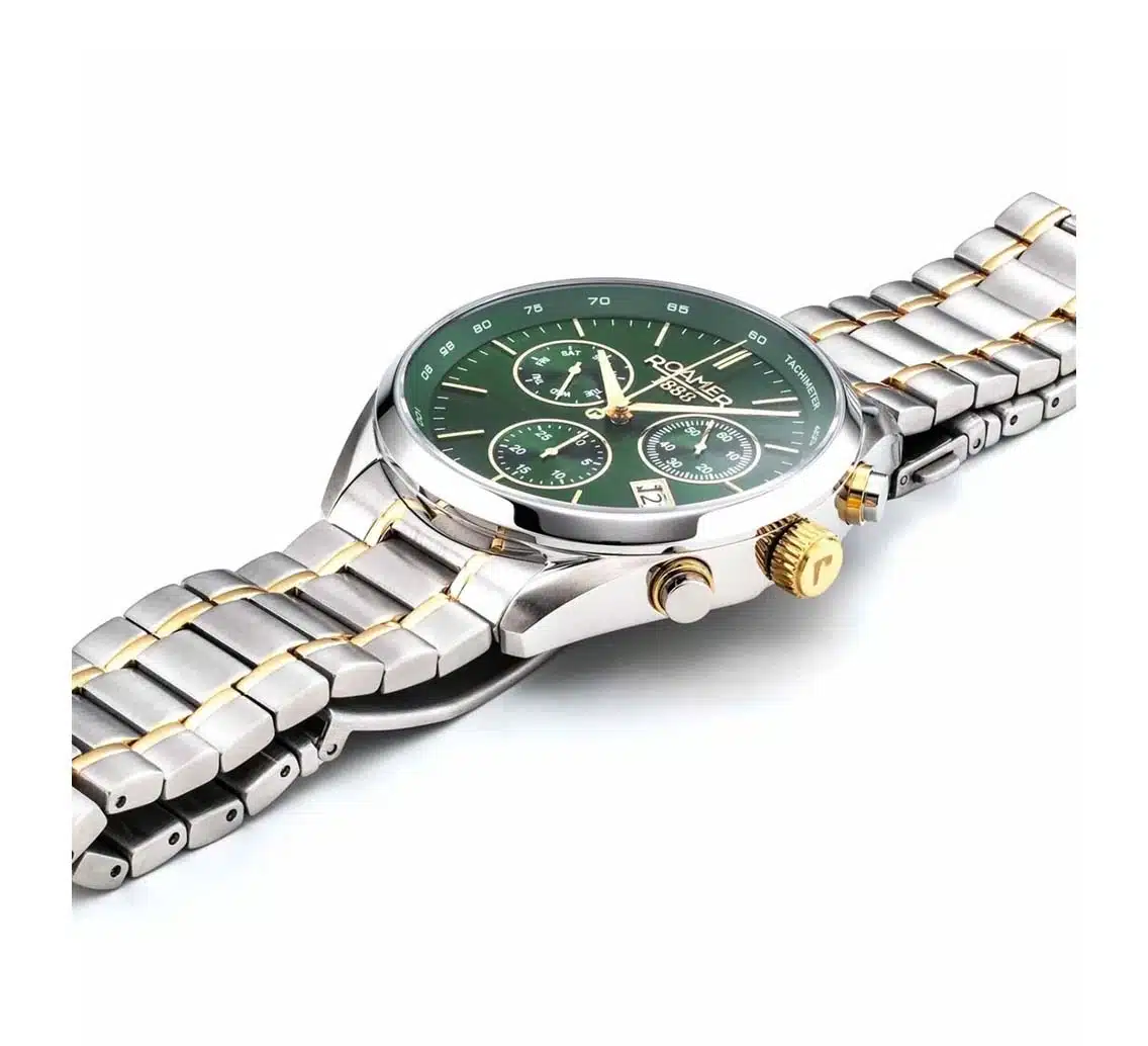 ساعت ROAMER مدل 993819 47 75 20، یک انتخاب بینظیر برای آقایانی است که به دنبال تلفیق ظرافت سوئیسی و عملکرد بالا هستند. این ساعت با قاب استیل ضد زنگ و بند دو رنگ (نقرهای و طلایی)، در کنار صفحه سبز رنگ جذاب، یک طراحی کلاسیک و در عین حال اسپرت را به نمایش میگذارد. موتور کوارتز سوئیسی دقیق و شیشه یاقوت کبود ضد خش، تضمینکننده کیفیت و دوام طولانیمدت آن است. با عملکرد کرونوگراف، مقاومت در برابر آب تا عمق ۱۰۰ متر و نمایش تاریخ، این ساعت نه تنها یک اکسسوری زیبا، بلکه یک ابزار کاربردی و قابل اعتماد برای هر روز شماست. با خرید این مدل از فروشگاه کرنوواچ با دریافت گارانتی شرکتی و فاکتور اصالت کالا خریدی مطمئن را تجربه کنید.