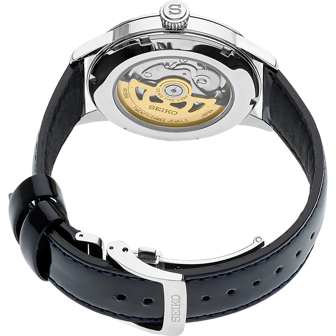 ساعت مچی سیکو مدل SRPB43J1، یا همان «Cocktail Time»، تلفیقی از هنر ژاپنی و مهندسی دقیق است که ظاهری کلاسیک و لوکس با صفحهای درخشان به رنگ آبی یخی ارائه میدهد. این ساعت مجهز به موتور اتوماتیک کالیبر 4R35 با عملکردی قابل اعتماد و دوام بالا است و با قاب استیل ضدزنگ و بند چرمی مشکی، جلوهای ماندگار و شیک به دستان شما میبخشد. مقاومت در برابر آب تا ۵۰ متر و طراحی هوشمندانه آن، این ساعت را به همراهی ایدهآل برای استفاده روزمره و مجالس رسمی تبدیل کرده است.